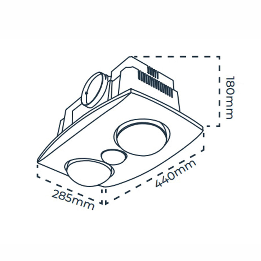 Atom Lighting Thredbo 3-In-1 Bathroom Heater & Exhaust with LED 2-Light R63 Lamp White